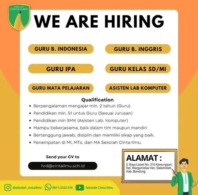 Lowongan Guru Sekolah Cinta Ilmu Friday, September 23, 2022 Labels: jabar Thanks for reading Lowongan Guru Sekolah Cinta Ilmu. Please share...!